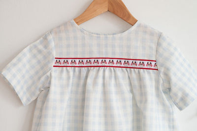 Grace Dress in Blue Star (#83) with Red Gingham (#5), Size 7